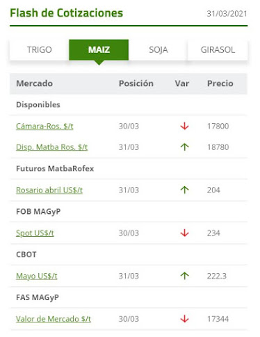 Precio de soja en la Bolsa de Comercio de Rosario y en Bolsa de Cereales de Rosario, Buenos Aires, Bahía Blanca, Quequén y Córdoba. También futuros y opciones de CBOT, y las últimas actualizaciones de precios del maiz, trigo y girasol.
